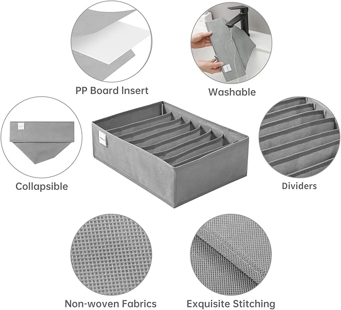 - 【8 Grids Divider】Each wardrobe organizer is divided into 8 separate grids, one grid, and one item, which can keep your clothes and closet neat and tidy and easy to pick and place in a short time. Plus, the foldable and stackable design can greatly improve the utilization of wardrobe space.