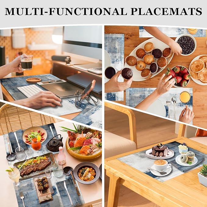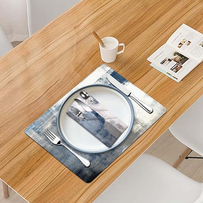 MCALK 4 Each Blue Placemats and Cloth Napkins Set of 8, Modern Abstract Art Painted Placemat for Home Kitchen Decor (Placemats 18 "x12 Cloth Napkins 18 "x18)