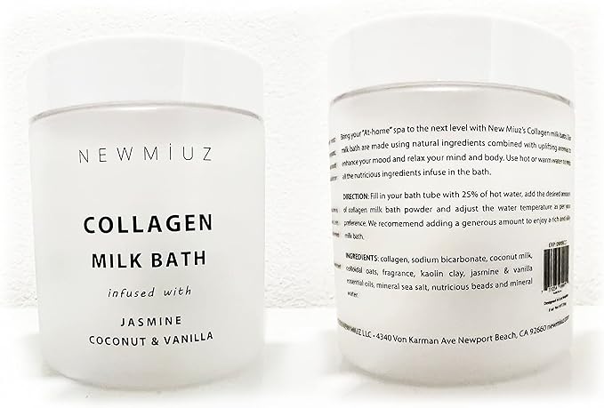 - Anti-Aging Collagen Milk Bath (300 Grams) - New Miuz's luxurious coconut milk bath soak nourishes and hydrates skin for younger, firmer, and silky-soft skin. Our natural, moisturizing milk bath soak contains multi-vitamins beads excellent for eczema relief.