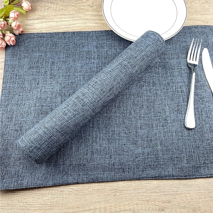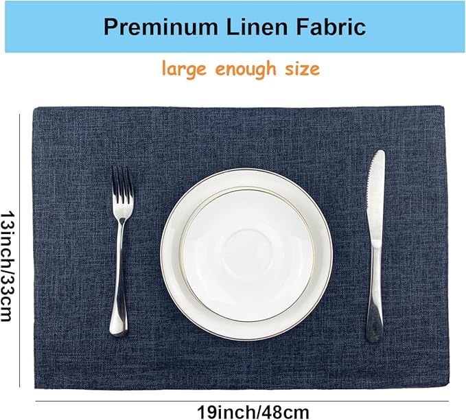 - Great table decor Kitchen Accessories rustic placemats.Classy placemats are made from premium cotton and linen blend,the table mat has a rustic looking and will give a warm feeling to the dining table whatever at casual or formal setting.Non-fading,Non-slip,Durable,Double Layered fabric,Super thick