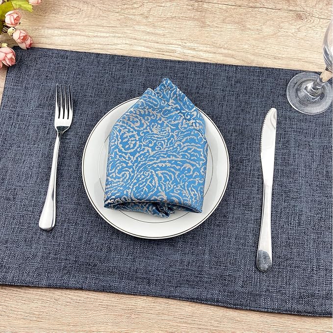 - Package and Size - Included 6 pieces of cloth placemats;Size in :13" x 19" (33cm x 48cm)large enough for a dinner plate and the size work well on dining.Perfect tableware mats for home,kitchen,restaurant,hotel,party and etc.(NOTE:All placemats are cut and sewn by hand and maybe 1 inch error.)