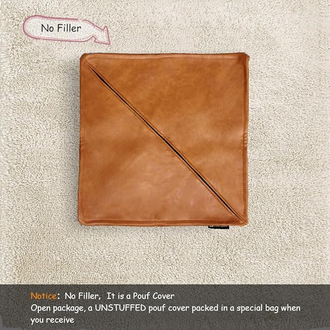 Pouf Ottoman, Unstuffed Pouf Cover, Handmade Faux PU Leather Moroccan, Orange Brown 17.7" Square, Foot Rest for Living Room, Floor Chair Gifts for Men Women, (Only Cover)
