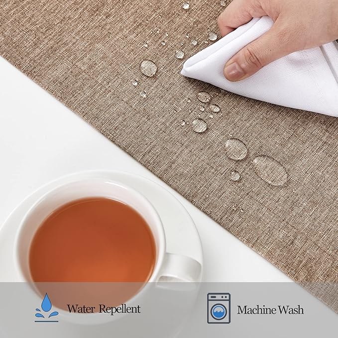 Mebakuk Cloth Placemats, Machine Washable Linen Style Thick Place Mats, Heat Resistant and Easy to Clean Fabric Table Mats for Kitchen Dining Table (Flaxen, Set of 6)