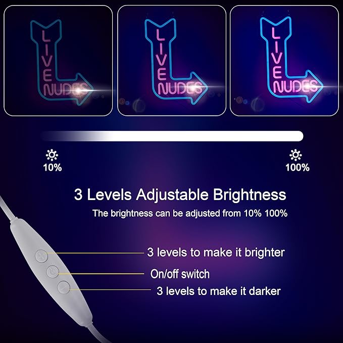 - The neon sign has dimmer on the switch , the brightness can be adjustabl