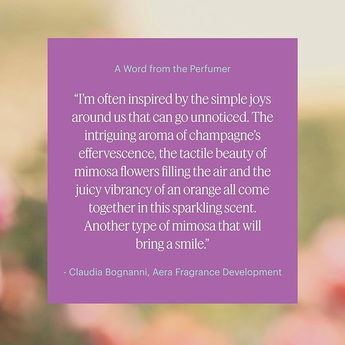 - Notes of champagne and macarons: Bonjour, Paris! Take in the city of lights and love while sipping a Mimosa cocktail at an open-air café. A cheerful, carefree Parisian spirit has been captured through lush jasmine blooms and mimosa flowers from the South of France. Sparkly orange and happy champagne notes paired with warmth from macarons and soft musk will romance you. C'est magnifique!