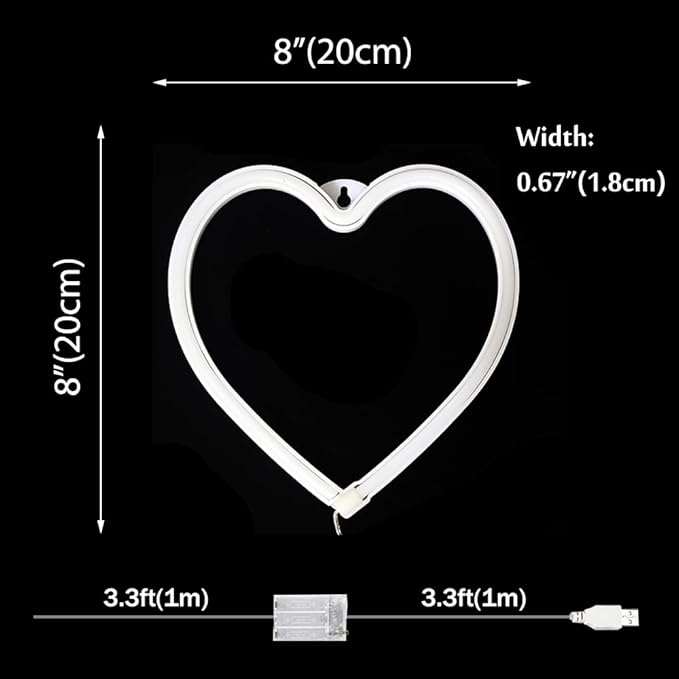 Heart Neon Lights Christmas Decorations, Love Shaped Lamp USB/Battery Operated Night Lights for Gift, Bedroom, Wall, Festival, Party, Valentine’s Day Decor-Heart(White)