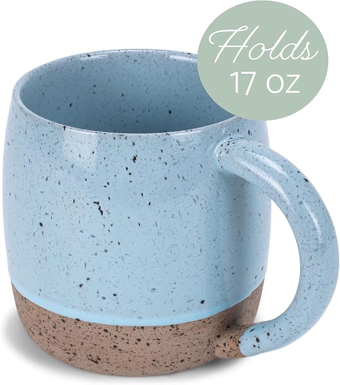 Elanze Designs Speckled Raw Bottom 17 ounce Ceramic Mug, Ice Blue