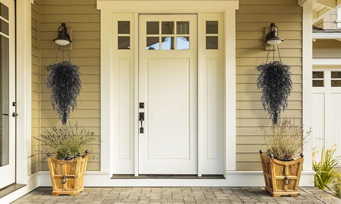 - Exquisite Decoration:This artificial plants lavender is designed for home decoration,you can easily hang it on the wall,doors,fences,windowsill,TV wall,swing,mirrors,banisters and anywhere. These lifelike lavenders lend gorgeous charm to your front porch, walkway, patio, and garden