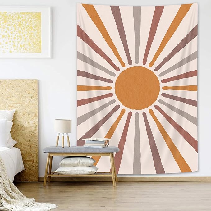 Bohemian Sun and Moon Vertical Tapestry, Vintage Aesthetic Retro 70s Rainbow Tapestry Wall Hanging for Bedroom, Minimalist Geometric Modern Art Tapestries Decor for Dorm Living Room Bedroom, 30X40