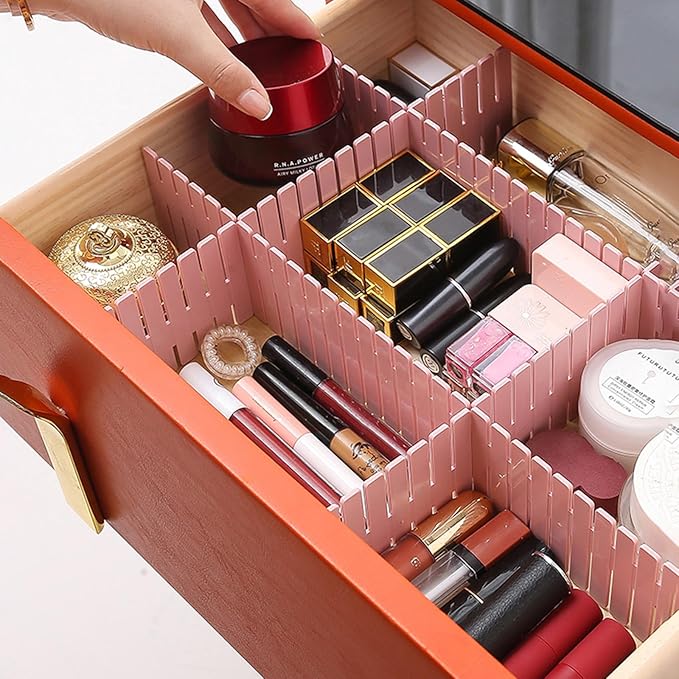 acDesign 40Pcs Grid Drawer Dividers, Adjustable Drawer Organizer for Socks, Underwear, Lingerie, Makeup, Bedroom Office Kitchen Storage (Pink)