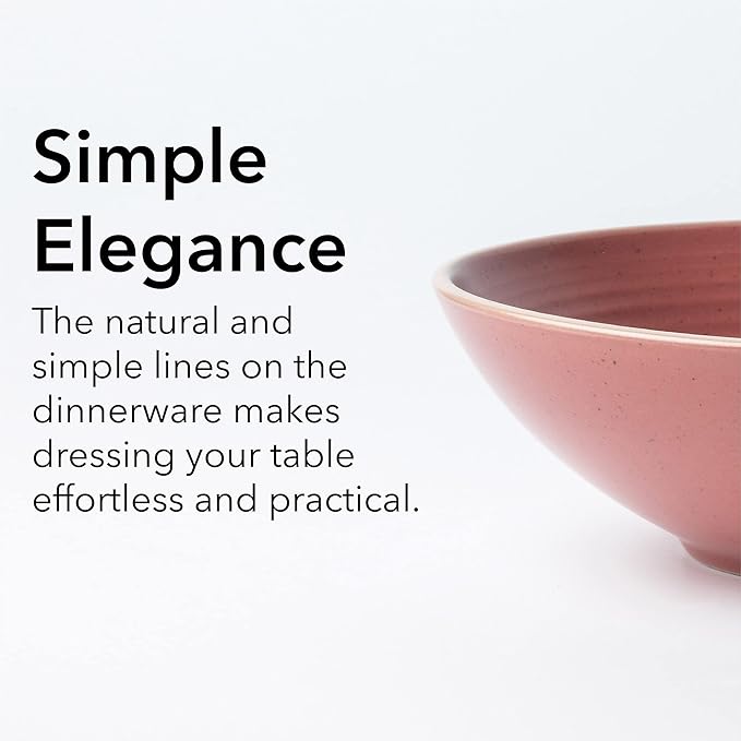 RINGAR Round Stoneware 16pc Double Bowl Dinnerware Set for 4, Dinner Plates, Side Plates, Cereal Bowls, Pasta Bowls - Speckle Matte Red (395438)