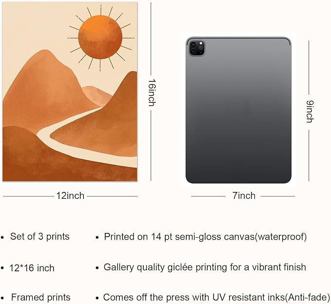 - 【Framed Boho Wall Art】The Size of the boho wall decor is: 12x16inch(30x40cm) with frame. weight: 22.2 ounce(3pcs)