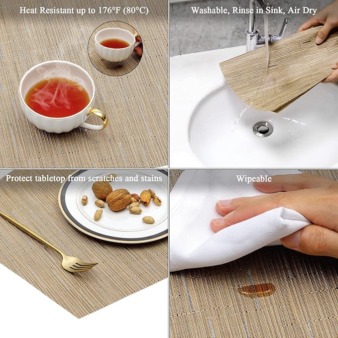 - Features: Protect your dinner table from scratches and stains, easily decorate and renew your tables. Reversible for use. They can be placed under plates, bowl, trays, cups, tableware, vases and ashtrays. Not Watertight.