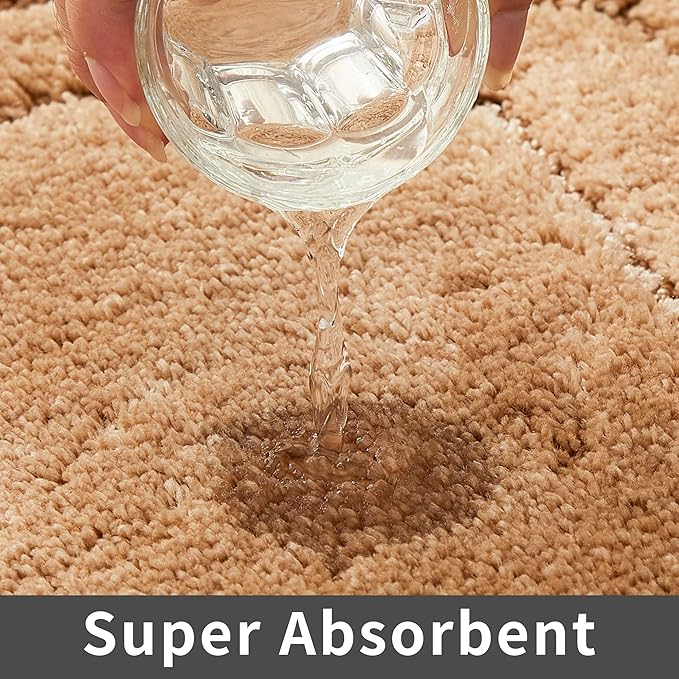 COSY HOMEER Extra Thick Bath Linen Set Rugs for Bathroom - Anti-Slip Bath Mats Soft Plush Yarn Shaggy 100% Strong Polyester Living Room Bedroom Mat Floor Water Absorbent(Beige,24x36 - Inches)