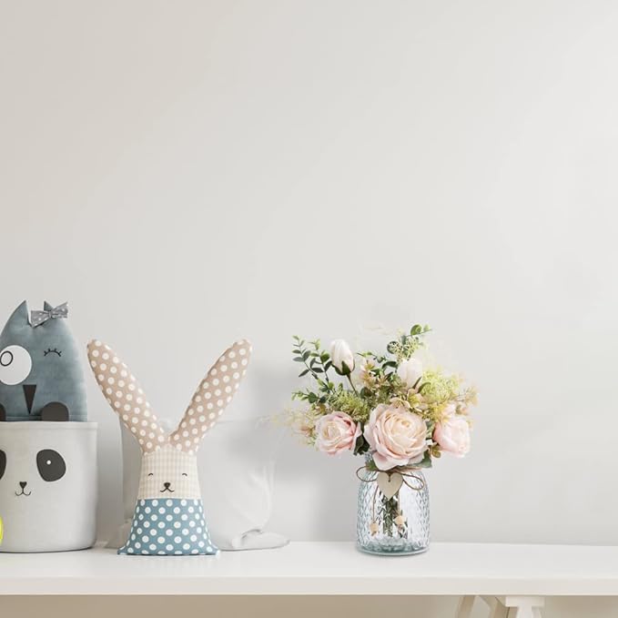 - Decoration: Fake rose bouquets in vase is suitable for dinning table, table centerpieces, living room, kitchen decoration.