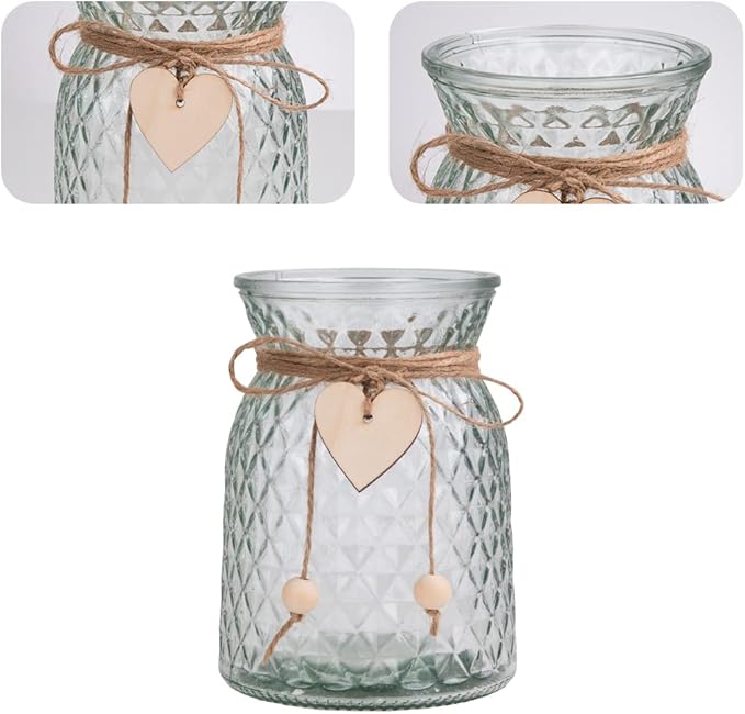 - Package: Flowers bouquet arrangement with rose eucalyptus and some greenery plants and high quatity glass vase with heart linen rope.