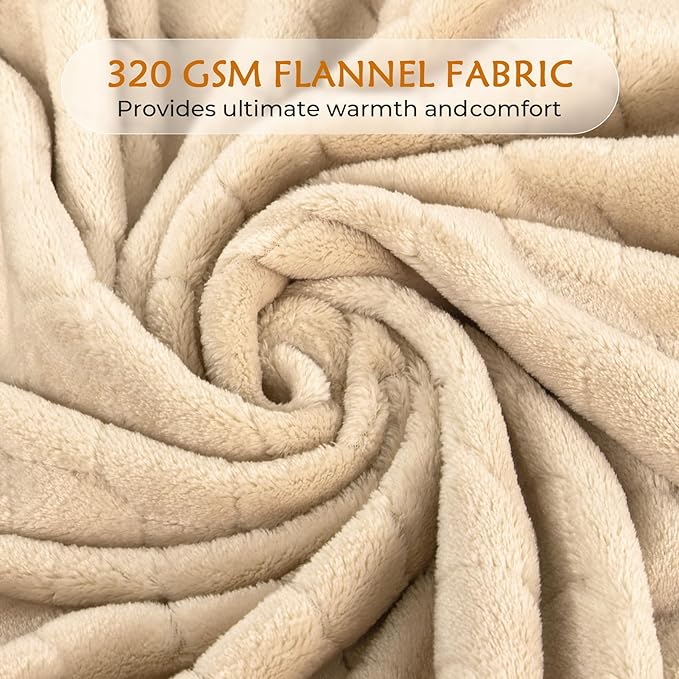 TOONOW Fleece Blanket Textured Fuzzy Plush Throw Blanket Twin Size 60" x 80", Super Soft Fluffy Bed Blanket Geometric Pattern Comfy Microfiber Flannel Blankets for Couch, Bed, Sofa, Apricot