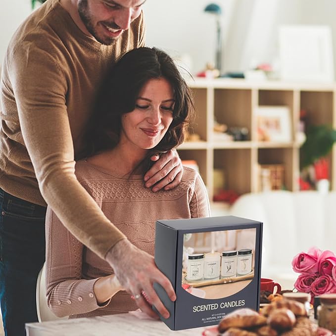 - Home Candle Set Gift − Each candle weighs 0.9 pounds, 4.1*4.8 (inches), retains fragrance for 45-50 hours, burns without black smoke, upgraded wick does not break easily, and can burn soy wax completely to the bottom of the jar.