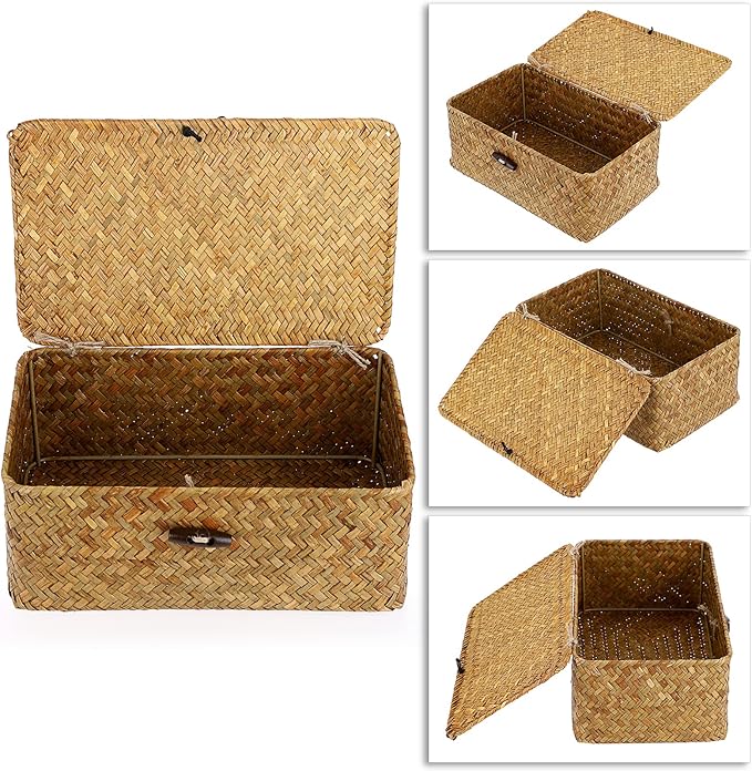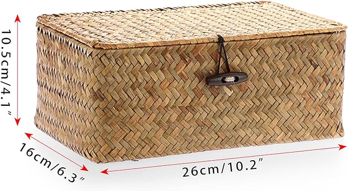 - Product Info -Size (L*W*H) :10.2" x 6.3" x 4.1",Package Included: 1x Handwoven Basket Box (Accessories are not included)