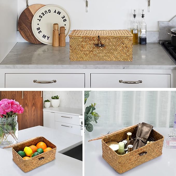 - Keep your Place Tidy and Neat - Use these baskets to keep your small items organized to reduce clutter,everything is easy to find.The lid help to hide all clutter inside,the make your messy place look nice and tidy