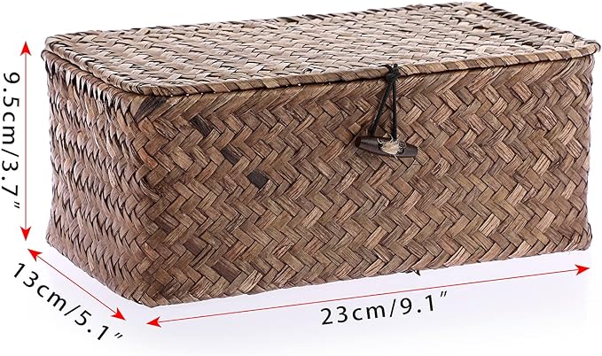 - Product Info -Size (L*W*H) : 9.1" x 5.1" x 3.7" ,Package Included: 1x Handwoven Basket Box (Accessories are not included)