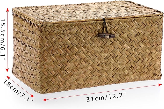 - Product Info - Size (L*W*H)12.2" x 7.1" x 6.1"; Package Included: 1x Handwoven Basket Box (Accessories are not included)