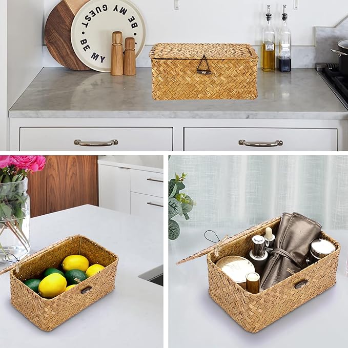 - Keep your Place Tidy and Neat - Use these baskets to keep your small items organized to reduce clutter,everything is easy to find.The lid help to hide all clutter inside,the make your messy place look nice and tidy