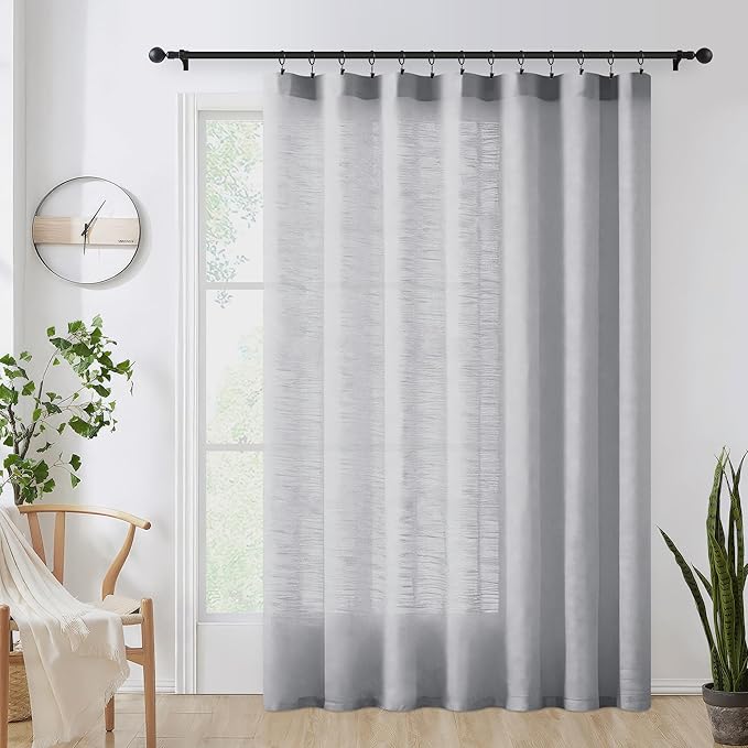 FMFUNCTEX Grey Sheer Curtains for Bedroom 96 inches Long Sliding Door Curtains Extra Wide Windows White Room Divider Linen Textured Curtain Panels for Living Room Neutral Gray 100”w 1 Pack Rod Pocket