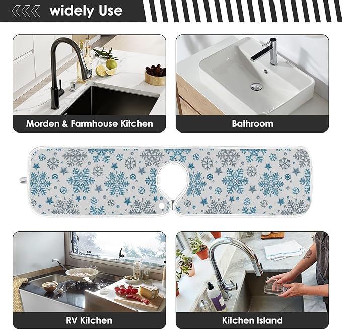 - DECORATION FOR KITCHEN BATHROOM: Using these Faucet Splash Catchers with our unique design, timeless color and seamlessly blends into your home to create perfect Sink Accessories, add a touch of luxury in your kitchen&bathroom will give your house an amazing makeover and elevate your home decor.