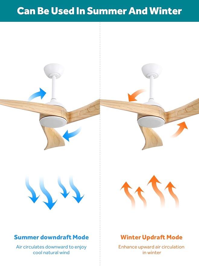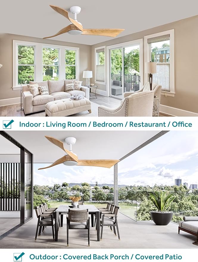 - Indoor Ceiling Fan: The propeller ceiling fan combines with white down rod and burlywood blades, great for any indoor and covered outdoor space, living room, bedroom, child room, covered patio and covered porch.