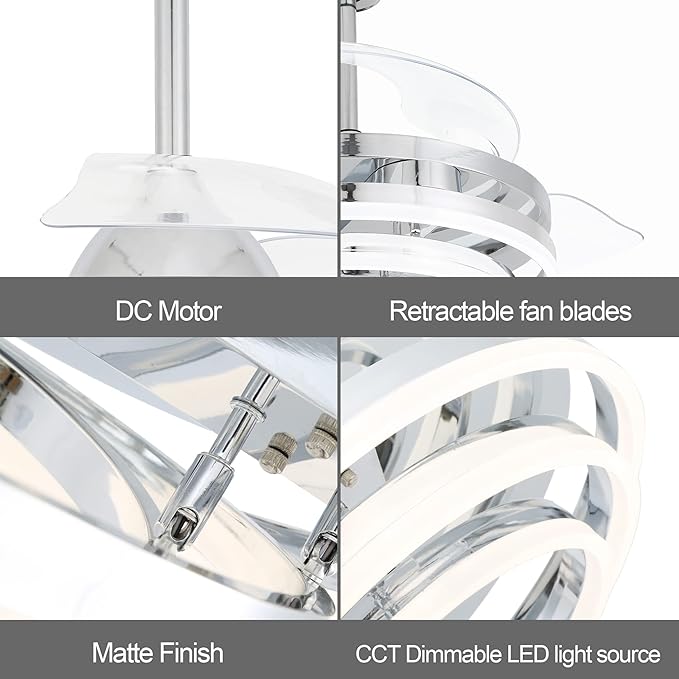 - 【Space-saving & Low-maintenance】Our fan's blades automatically retract internally, saving space and reducing the need for frequent cleaning. The integrated LED light provides ample energy-efficient illumination.