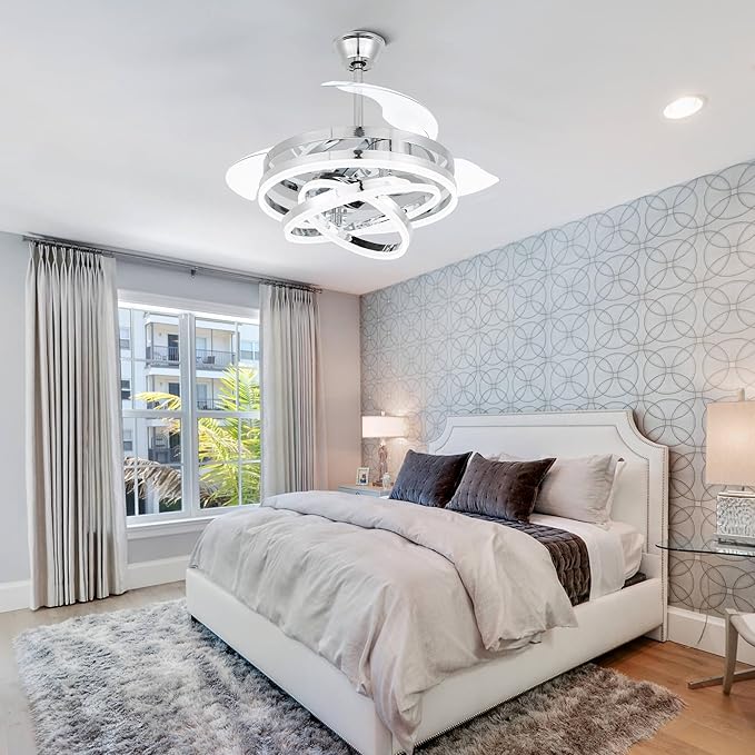 42" Retractable Ceiling Fan with Lights & Remote - Silent DC Motor Modern Ceiling Fan - 6 Speed LED Fan for Bedroom living room Kitchen