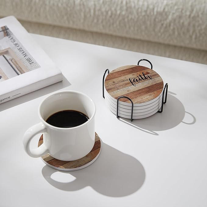 Coasters for Drinks with Bible Verses, Set of 6 Absorbent Drinks Coasters with Holder, Christian Gifts