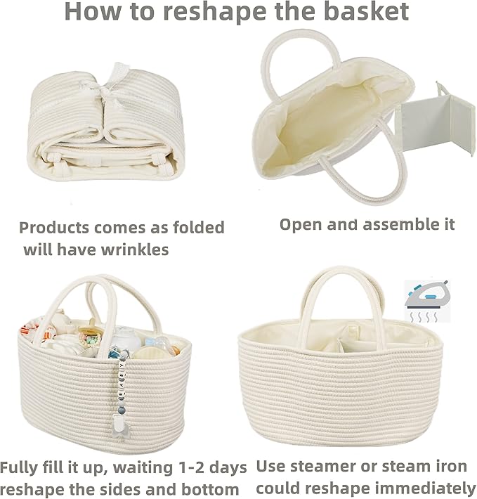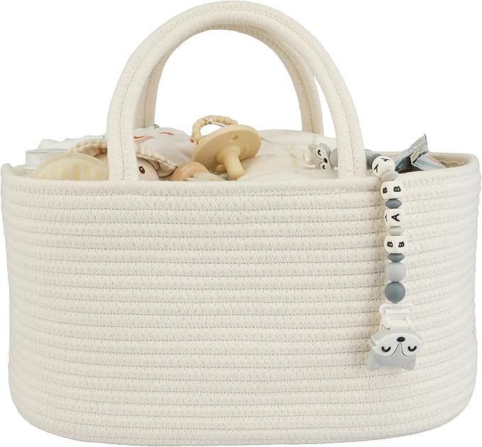 - Great Baby Gifts: This unisex diaper basket organizer is a perfect Newborn gifts as it Looks perfect on dresser top, next to diaper pail, bedside, crib and etc. This diaper basket caddy is not only beautiful but also practical. Could fill it with diapers, wipes or anything else new baby stuff as gift basket. Baby caddy is one of newborn must have items.