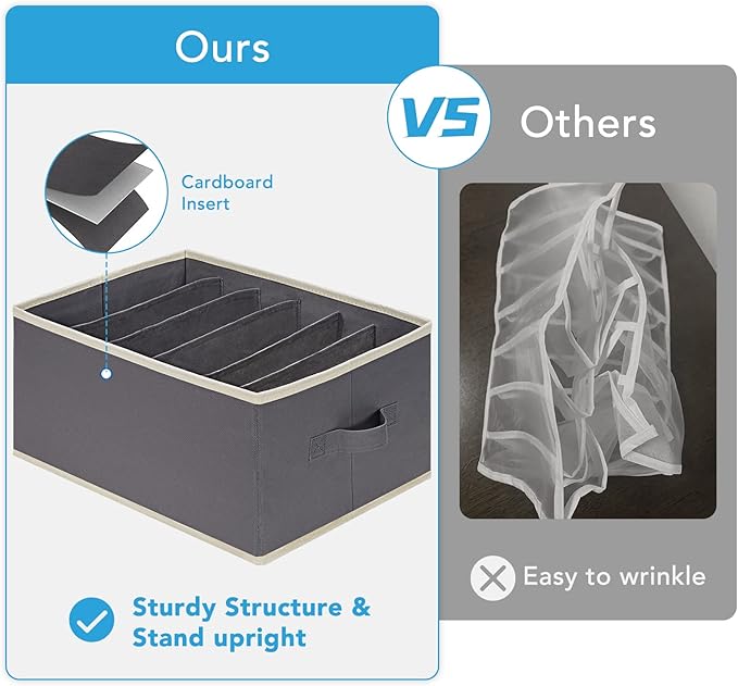 - 6 Large Compartments: The clothes organizer measures 15.7 x11.1 x7.9 inches with 6 large compartments. Each grid is 50% larger than others. With this big size container, it is spacious for your clothes, pants, jeans, sweaters, t-shirts, thin coats, etc