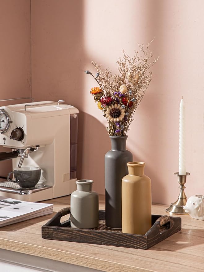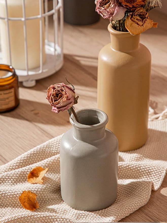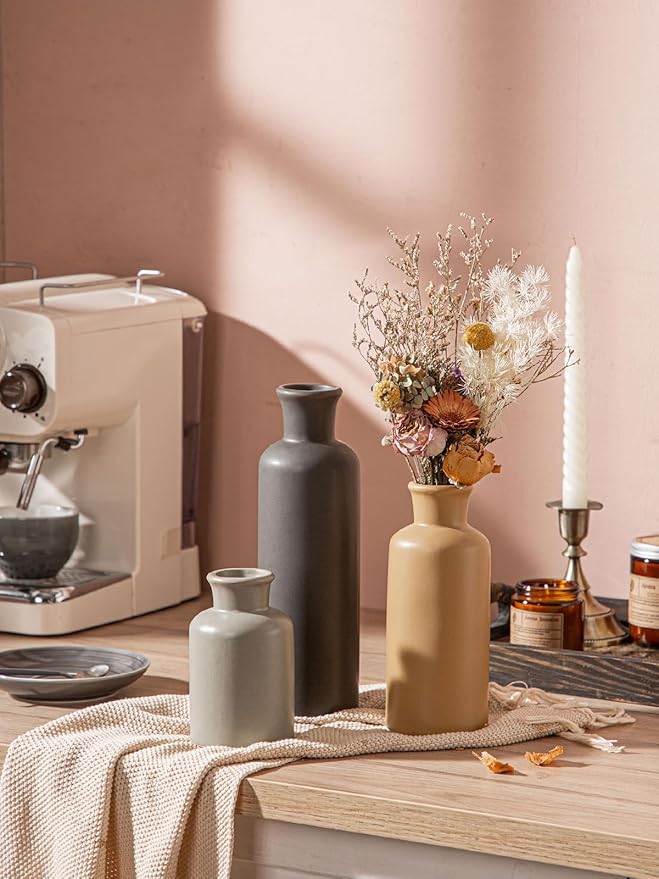 - 【Best Value Ceramic Vase Set】These decorative vases measure: 3"L x 3"W x 5"H (about 7.6cm x 7.6cm x 12.7cm), 3"L x 3"W x 7". 5 inches (about 12.7 cm) high, 3 inches (about 7.6 cm) long x 3 inches (about 7.6 cm) wide x 10 inches (about 25.4 cm) high, to meet your different needs, can be used to display artificial flowers, flowers or Dried flowers add a unique look to a minimalist home as a simple and elegant home decor.