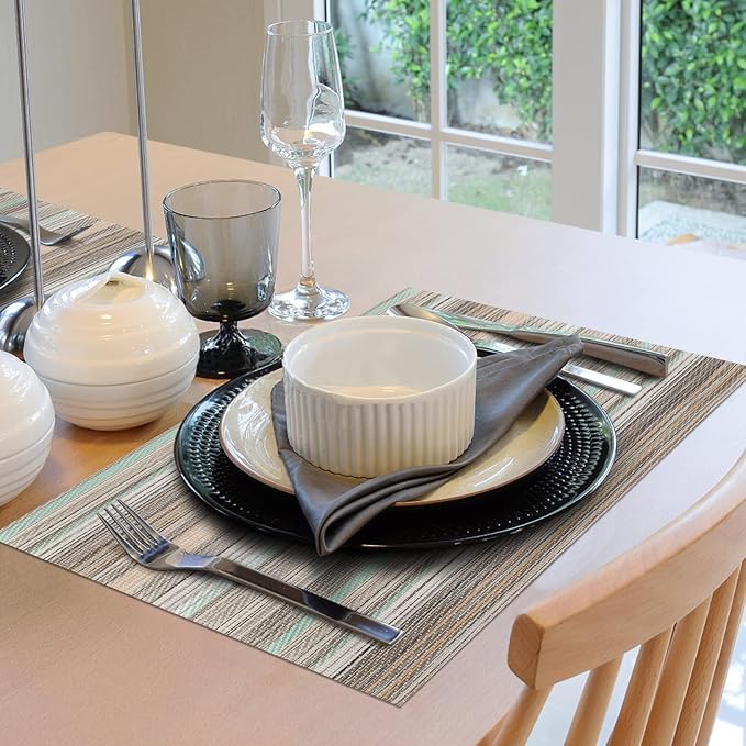 Winknowl Placemats, Washable Vinyl Woven Indoor and Outdoor Heat Stain and Water Resistant Elegant Table Mats for Dining Table Set of 6 (Teal Green)