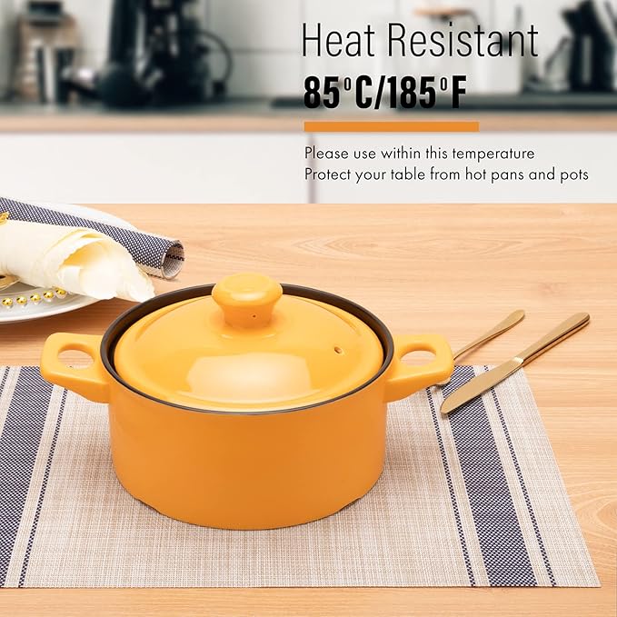 - ✔【High Material Quality】Placemats woven with high quality eco-friendly PVC materials. Effective heat resistance of approximately 185°F(85℃)