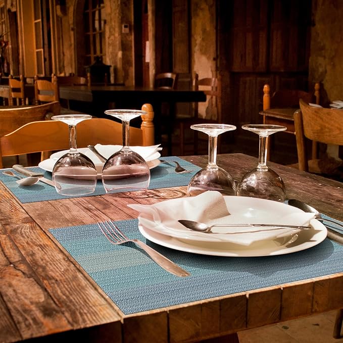 Winknowl Placemats, Set of 6 Heat Resistant Stain Resistant Woven Vinyl Insulation Placemats, Durable Washable Elegant Table Mats for Dining (Blue)