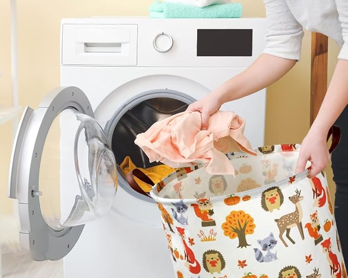 - 【FEATURE】:1.The laundry basket has a large capacity and can store the whole family's clothes. 2.Laundry basket with two handles, easy to move. 3.collapsible design,you can fold it up when you don't need it,easy to store and save space. 4.The pattern of clothes hamper is fashionable and stylish, It will be great gift for family and a good helper for housewives.