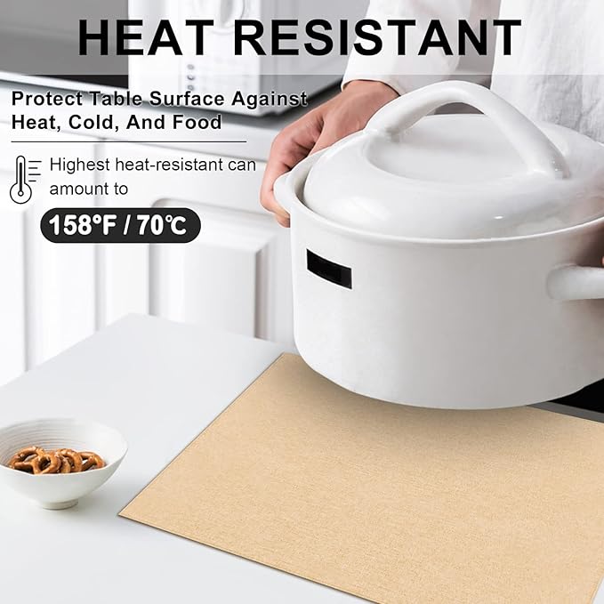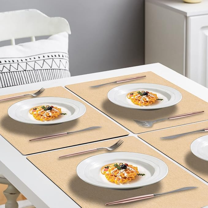 - [Double Layers]- Each placemat has double layers and both sides are usable. This washable place mats is definitely a perfect shield for your table in dinning hall, kitchen, restaurants, coffee shops, hotel or even business office. NOT waterproof.