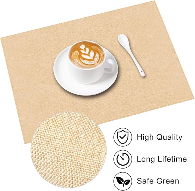 - [Premium Quality Material]- Our placemats are made from premium cotton and linen blend giving a nice warm feeling whatever at casual or formal setting. As an Eco-Friendly Kitchen Accessories, The placemats very durable, Non-fading, Double-layered fabric, Super thick.