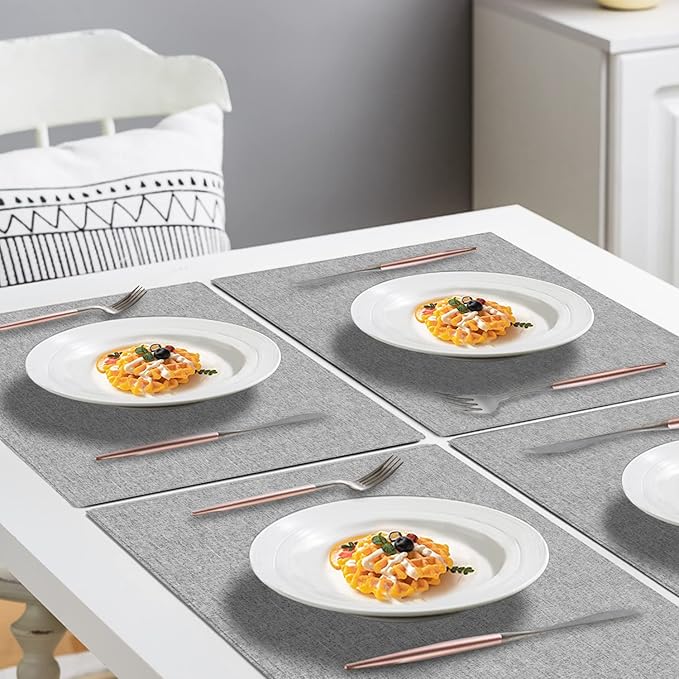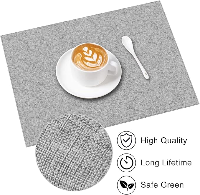 - [Premium Quality Material]- Our placemats are made from premium cotton and linen blend giving a nice warm feeling whatever at casual or formal setting. As an Eco-Friendly Kitchen Accessories, The placemats very durable, Non-fading, Double-layered fabric, Super thick.