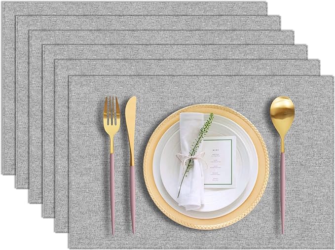 Cloth Placemats Set of 6, Cotton Linen Blend Machine Washable Durable Linen Table Mats, Heat Resistant Placemats Wrinkle Free Place Mats for Dining Table, Easy to Clean (Light Grey, 6)