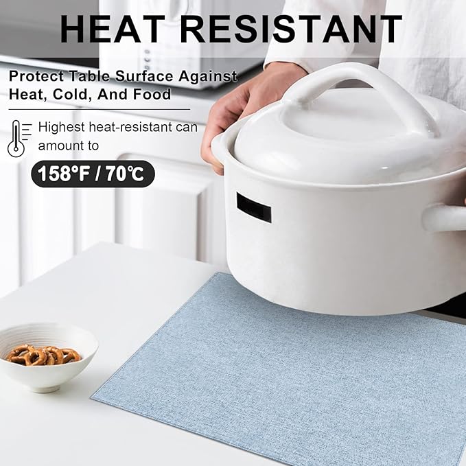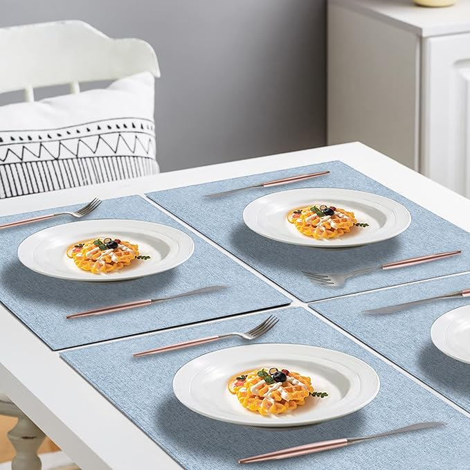 - [Premium Quality Material]- Our placemats are made from premium cotton and linen blend giving a nice warm feeling whatever at casual or formal setting. As an Eco-Friendly Kitchen Accessories, The placemats very durable, Non-fading, Double-layered fabric, Super thick.