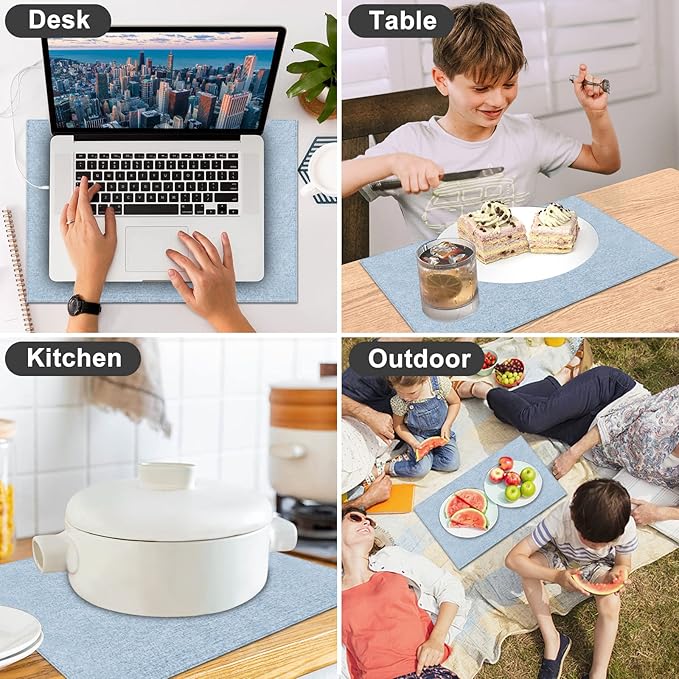 - [Double Layers]- Each placemat has double layers and both sides are usable. This washable place mats is definitely a perfect shield for your table in dinning hall, kitchen, restaurants, coffee shops, hotel or even business office. NOT waterproof.