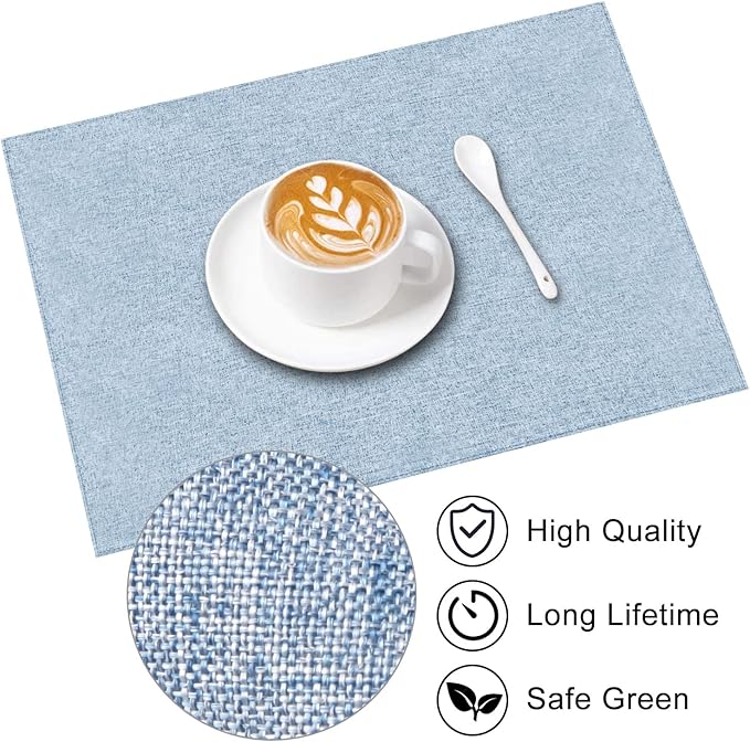 Cloth Placemats Set of 6, Cotton Linen Blend Machine Washable Durable Linen Table Mats, Heat Resistant Placemats Wrinkle Free Place Mats for Dining Table, Easy to Clean (Light Blue, 6)