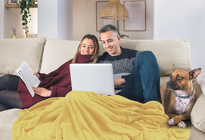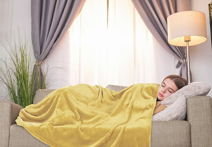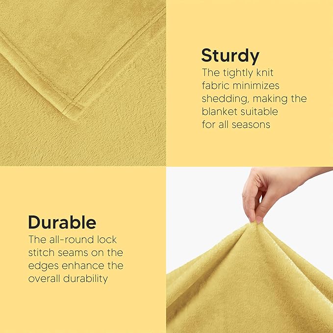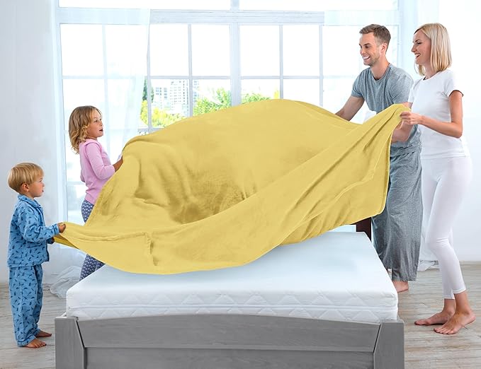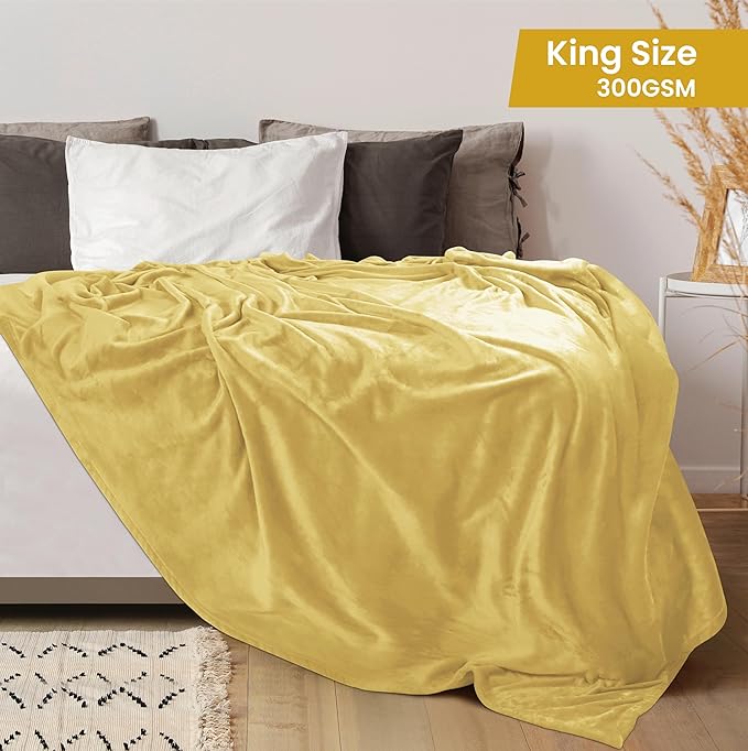 Utopia Bedding Fleece Blanket King Size Yellow 300GSM Luxury Fuzzy Soft Anti-Static Microfiber Bed Blanket (90x102 Inch)