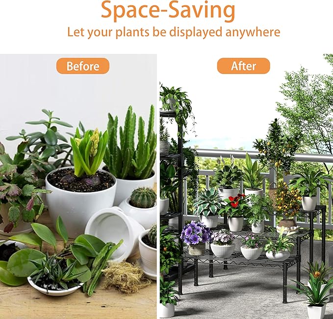 - 【Practical and Space Saving】Each shelf can be adjusted in height, this plant stand fits every corner of your room and garden, freeing up floor space for you to organize your plants neatly , 3-tier height-adjustable shelf , make the space full of three-dimensionality and better display all your potted plants.