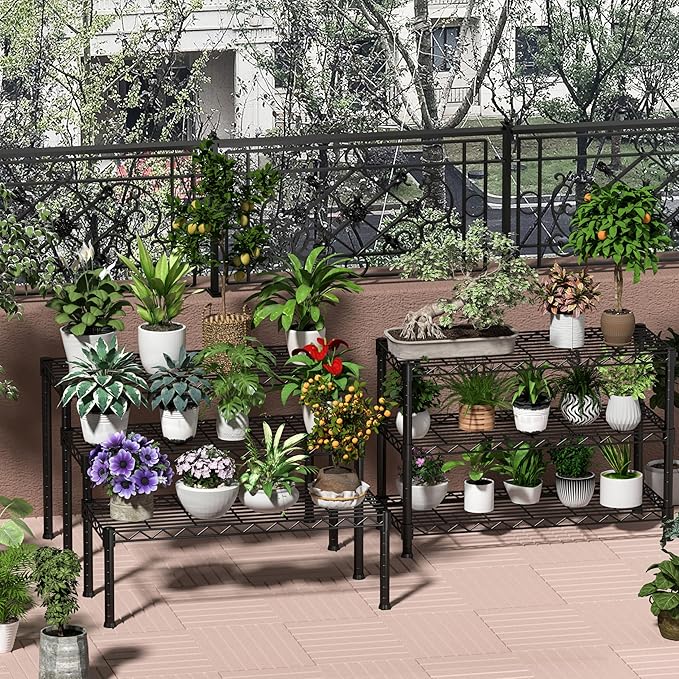- 【Large Capacity】3-tier shelf can hold at least 8+ pots,More than four assembly shapes, it will give you more storage space without taking up too much space to put it, it will make the best use of your Vertical space and corner positions. Good lighting, adequate ventilation and drainage are good for plants and living environment. In addition to displaying your plants and flowers, you can also put floral tools, crafts, and more on it.
